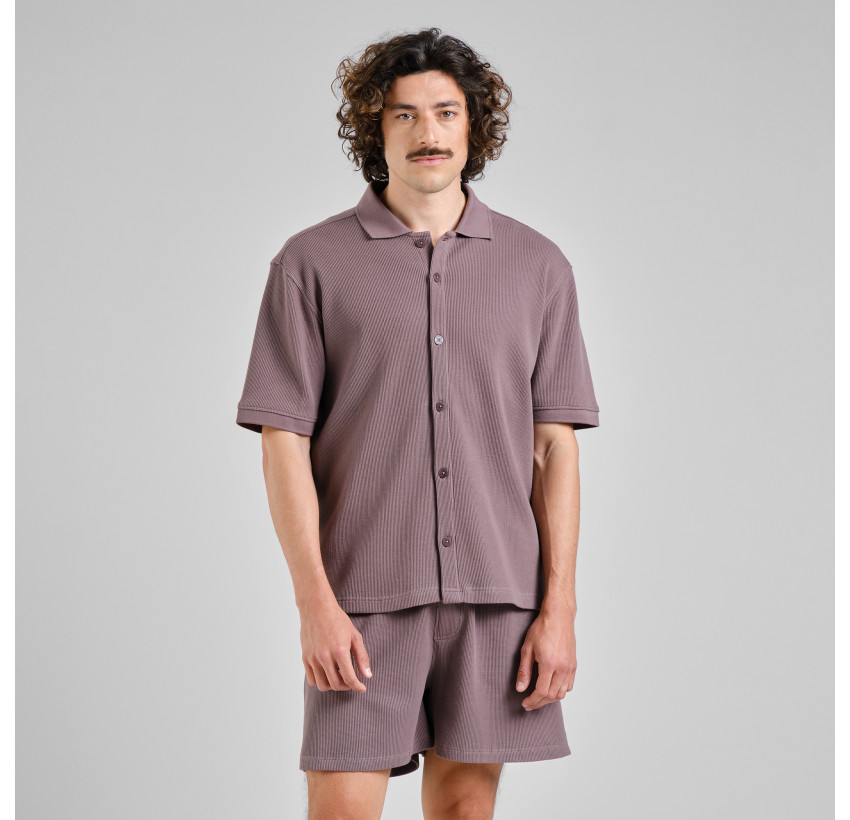 Kurzärmliges, durchgeknöpftes Polo mit Waffelstruktur. Lässiger Fit. Material: 95% Bio-Baumwolle, 5% Elasthan. Fair hergestellt in Indien.