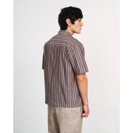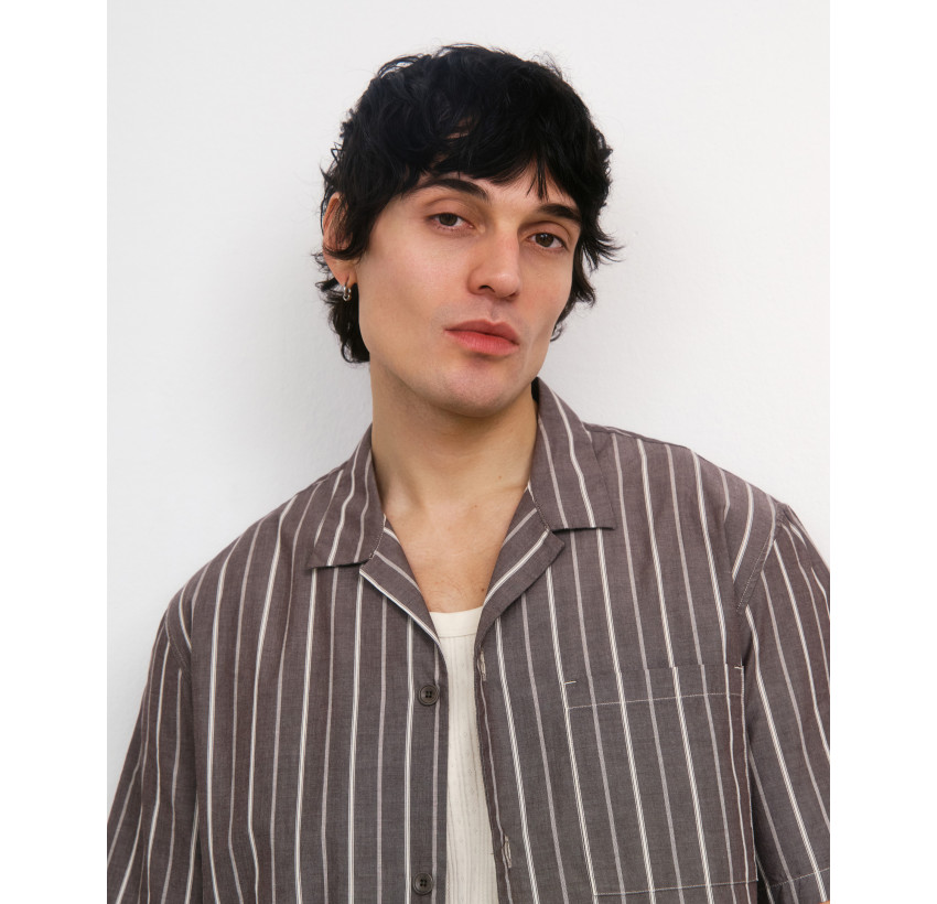 Lockeres Hemd mit Bowling-Kragen und kurzen Ärmeln. Material: 100% Bio-Baumwolle. Fair hergestellt in Portugal.