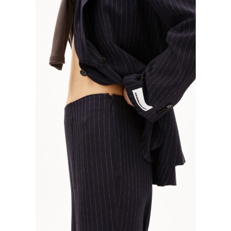 Extralange Anzughose mit extra breitem Schlag, ohne Taschen oder Schlaufen. Die Hose sitzt etwas tiefer und fällt eher groß aus. Das Material ist fließend und leicht. Material: 99% EcoVero® Viskose, 1% Recyceltes Polyester. Fair hergestellt in Portugal.