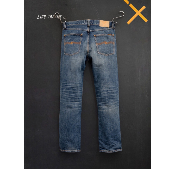 Rad Rufus Sand Tracks bildet die Ausbleichungen und Tragespuren eines original eingetragenen Paares Nudie Jeans detailgetreu nach. Mit einer präzisen Methode wurde jedes Detail des Originals erfasst und auf ein neues Paar Jeans übertragen. Diese Rad Rufus, unsere Jeans mit regulärer Passform, hoher Taille und geradem Bein, gehört zur Life Tracks Range: Jeans, die auf einer wahren Geschichte basieren. Material: 100% Bio-Baumwolle. Fair hergestellt in Italien.