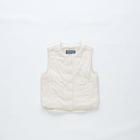 Gefütterte Steppweste mit Druckknöpfen und Seitentaschen. Außenmaterial: 100% Bio-Baumwolle, Futter: 100% Recyceltes Polyester. Fair hergestellt in Kathmandu, Nepal.