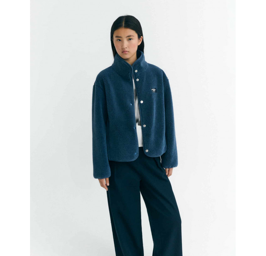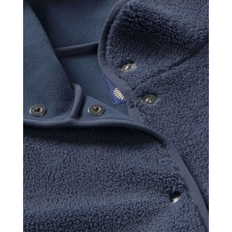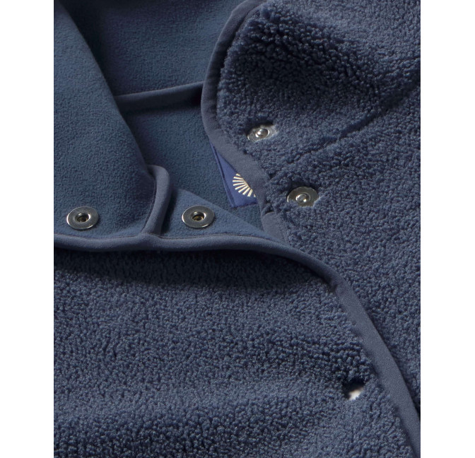 Fleecejacke aus doppelseitigem extra-weichen bonded Fleece. Mit magnetischer Knopfleiste, seitlichen Reißverschluss-Taschen und Stehkragen. Material: 100% Recycled Polyester. Fair hergestellt in China.