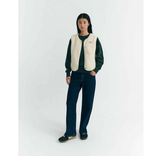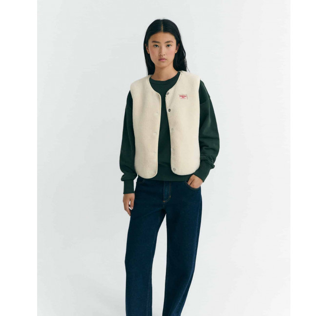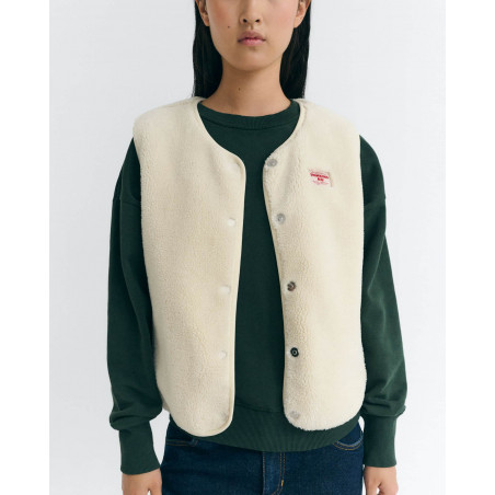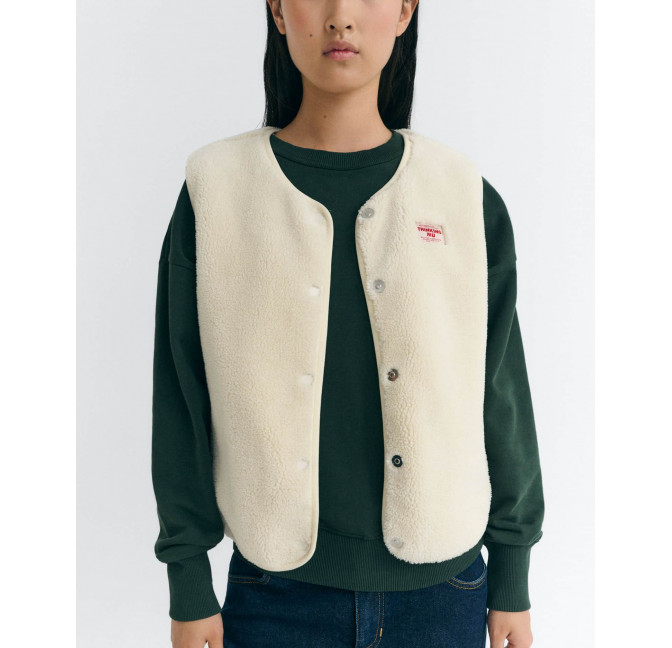 Super weiche Weste aus bonded Teddy-Fleece. Mit magnetischer Knopfleiste, seitlichen Reißverschluss-Taschen, innen mit glattem Fleece. Material: 100% Recyceltes Polyester. Fair hergestellt in China.