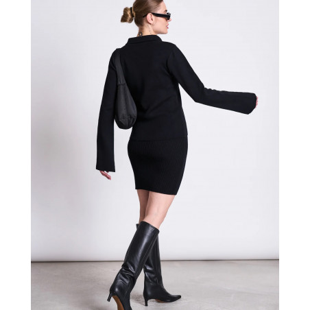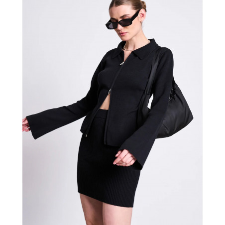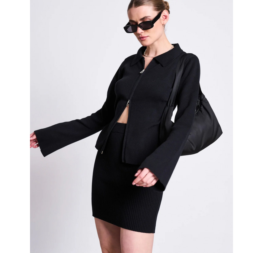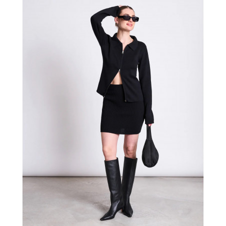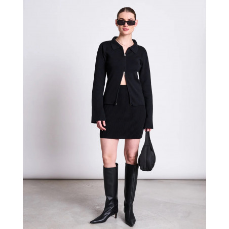 Schmal geschnittener Cardigan mit Kragen und 2-Wege-Zipper. Material: 100% Bio-Baumwolle.