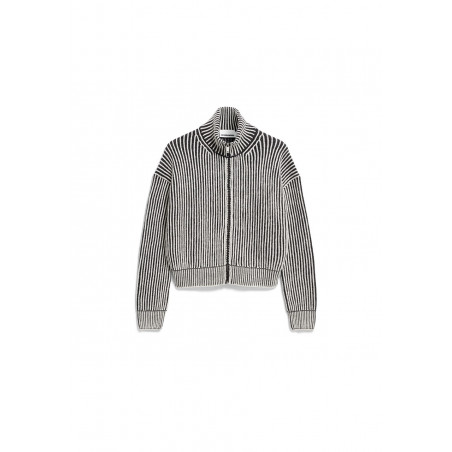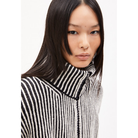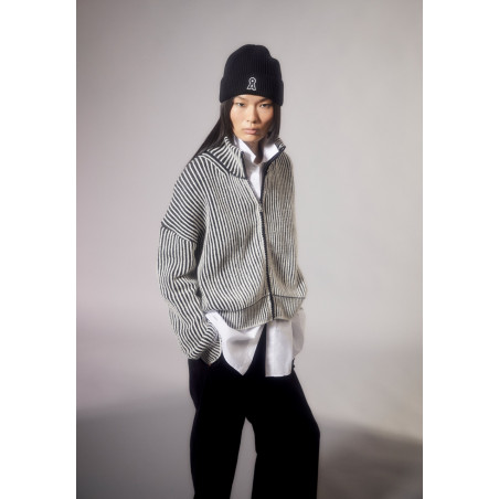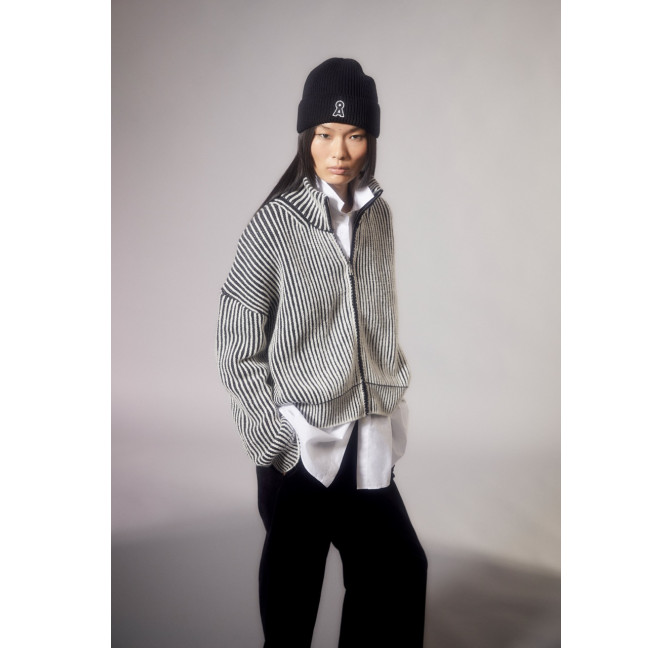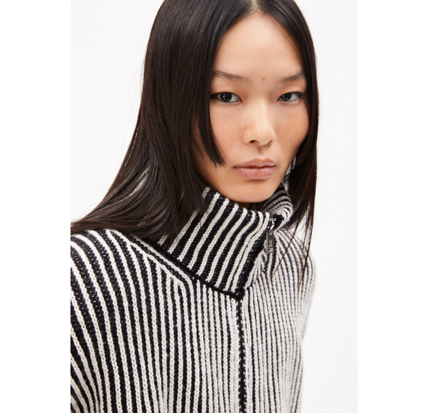 Zip-Cardigan aus Woll-Mix in zweifarbigem, weichem Strick. Die Jacke hat eine entspannte, lockere Passform und einen moderne, hohen Kragen, der warm hält. Material: 55% Bio-Wolle, 45% Bio-Baumwolle. Fair hergestellt in der Türkei.