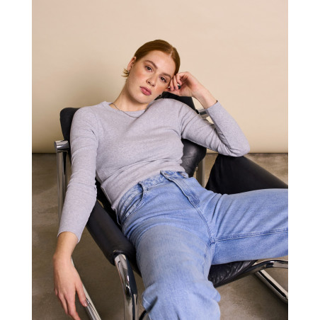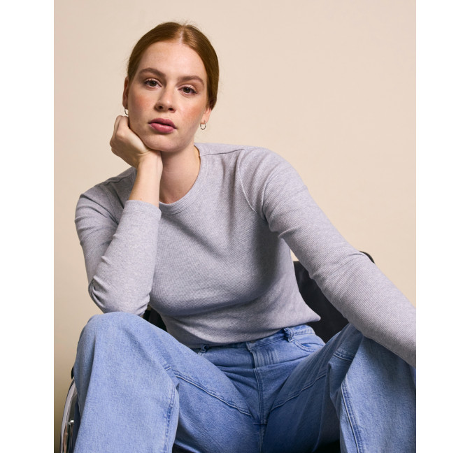 Basic Longsleeve aus geripptem Baumwolljersey. Material: 98% Bio-Baumwolle, 2% Elasthan. Fair hergestellt in Portugal.