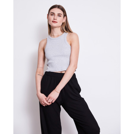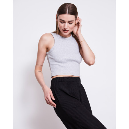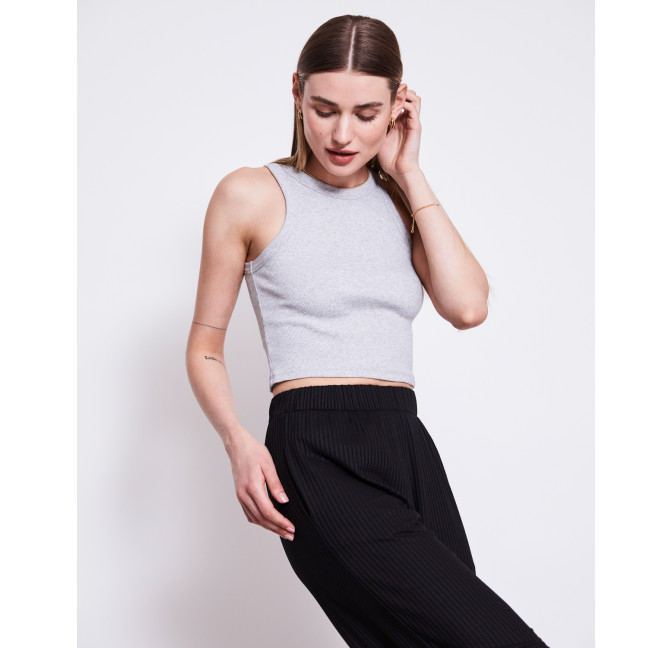 Weiches, leichtes und sehr bequememes Top aus Bio-Baumwoll-Rippstoff. Eng anliegende und leicht verkürzte Passform. Material: 98% Bio-Baumwolle, 2% Elasthan.