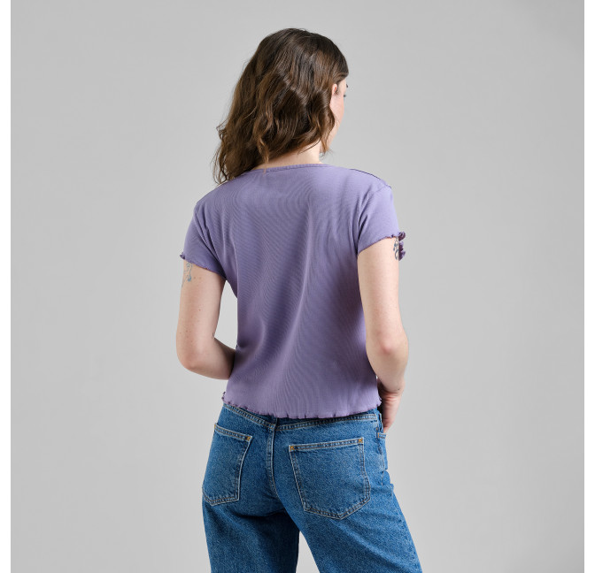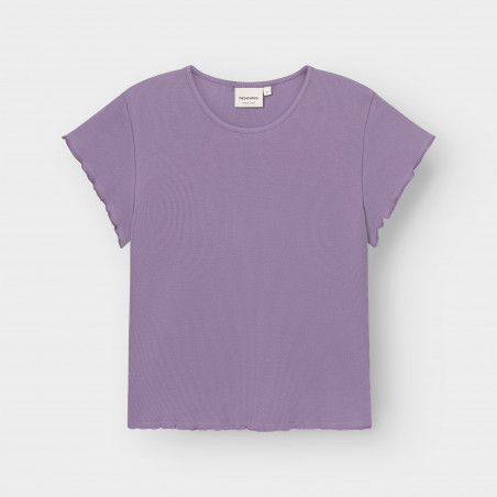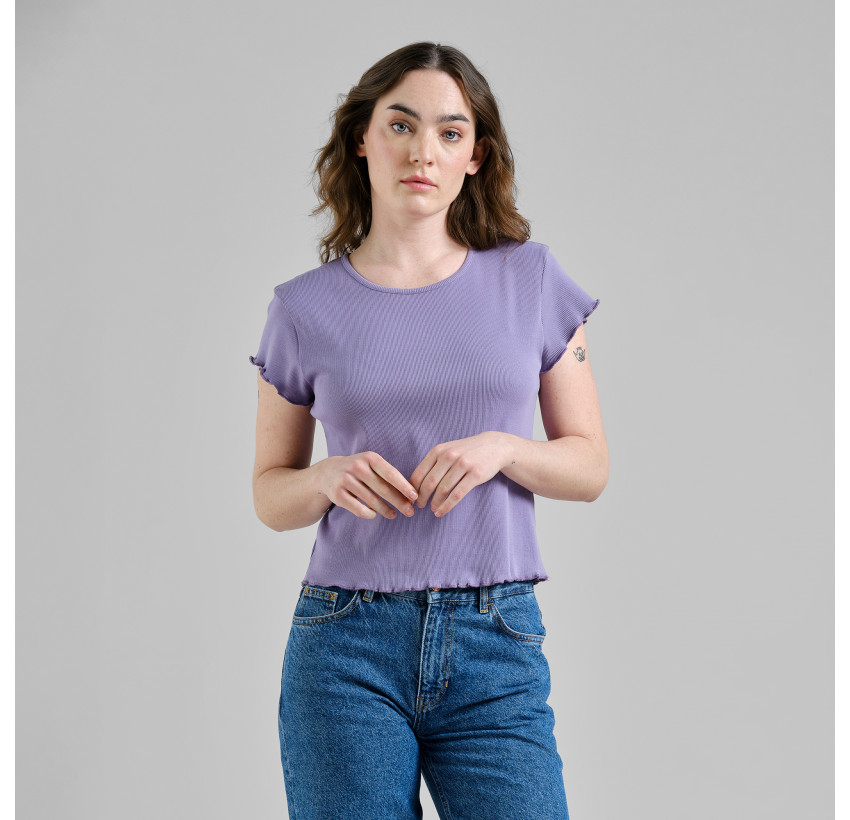 Rib Shirt mit Muschelsaum. Das T-Shirt ist enganliegend und etwas kürzer geschnitten. Material: 95% Bio-Baumwolle, 5% Elasthan.