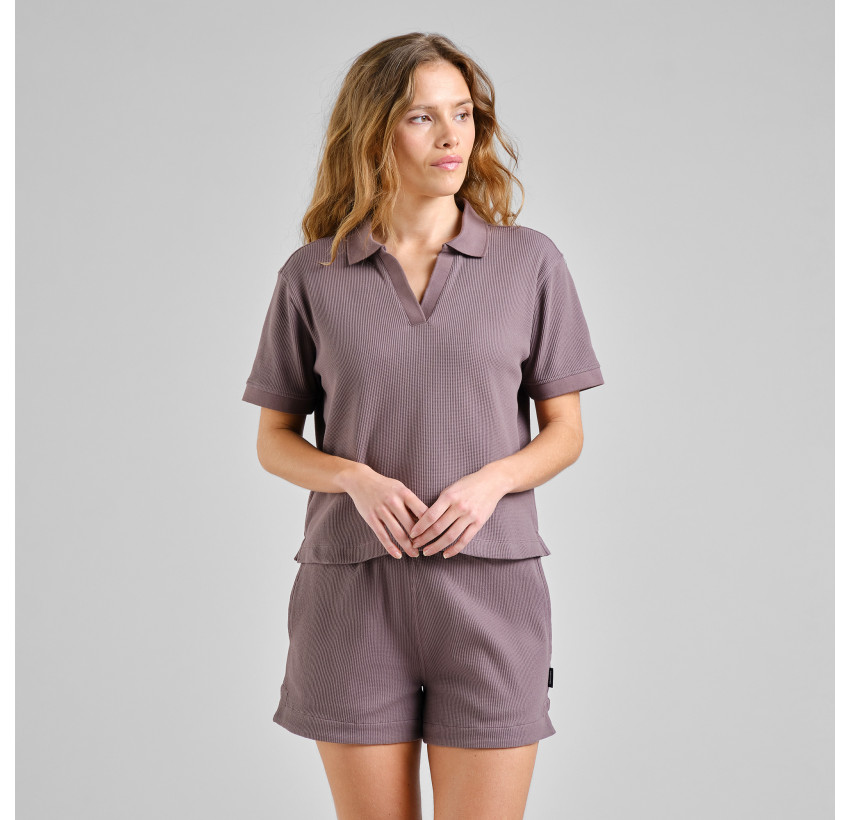 Kurz geschnittenes Polo mit Waffelstruktur. Lässiger Fit. Material: 95% Bio-Baumwolle, 5% Elasthan. Fair hergestellt in Indien.