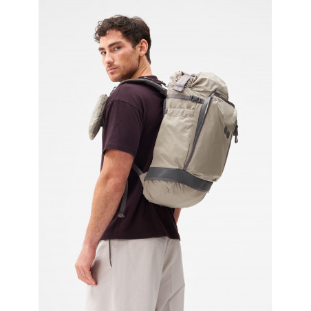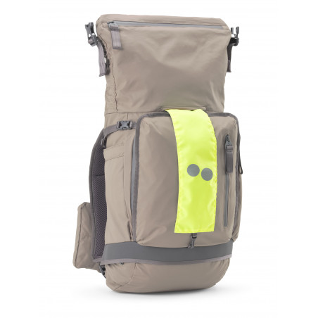 Absolut alltagstauglicher, wasserfester Rucksack mit gepolstertem Rückenteil für eine gute Belüftung sowie gepolsterten Schultergurten und verstellbarem Brustgurt. Die zusätzliche Tasche an den Schultergurten ist abnehmbar. Das Außenmaterial besteht aus sehr stapazierfähigem Ripstop-Gewebe. Der Rucksack fasst 32 l und ist auf 37 l erweiterbar. Die sehr durchdachte Innenaufteilung beinhaltet ein gepolstertes 16'' Laptopfach (25 x 35 x 3,5 cm (B/H/T)), eine Halterung für Trinkflaschen, einen Schlüsselanhänger und diverse kleinere Reißverschlusstaschen, für ein übersichtliches Verstauen. Zusätzliche Besonderheiten sind der neongelbe Warn-Strap, für eine bessere Sichtbarkeit im Straßenverkehr und ein verstaubares Regencover. Material Außen: 100% recyceltes Nylon Material Innen: 100% recyceltes Polyester. Material "Solid"-Varianten: 100% Ultramid® Ccycled™ (Polyamide)