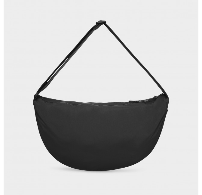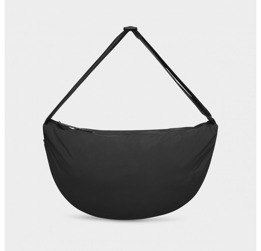 Große Moonbag aus recyceltem Nylon. Weiches Material, mit verstellbarem Schulterriemen und Reißerschluss. Maße ca.: 60cm x 36cm. Material: 100% Recycled Nylon. Fair hergestellt in China.