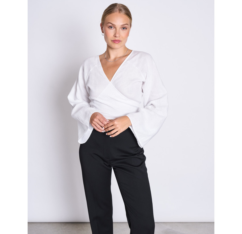 Wickelbluse aus Leinen, mit langen weiten Ärmeln. Material: 100% Leinen (European Flax®). Fair hergestellt in Portugal.