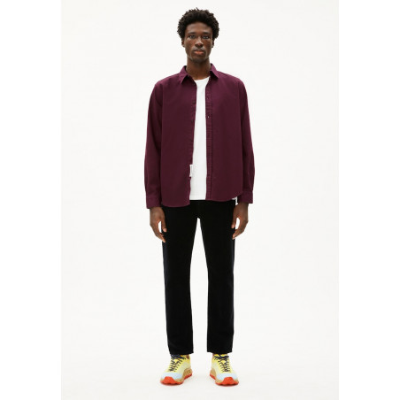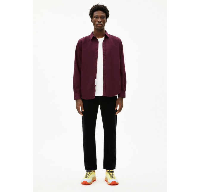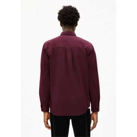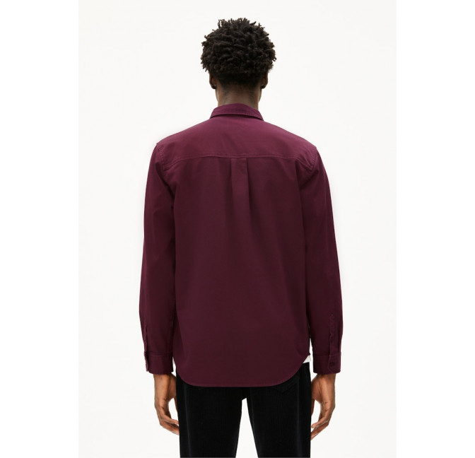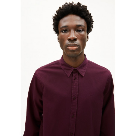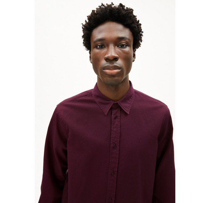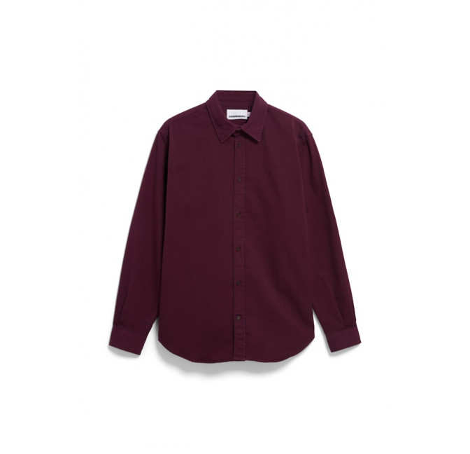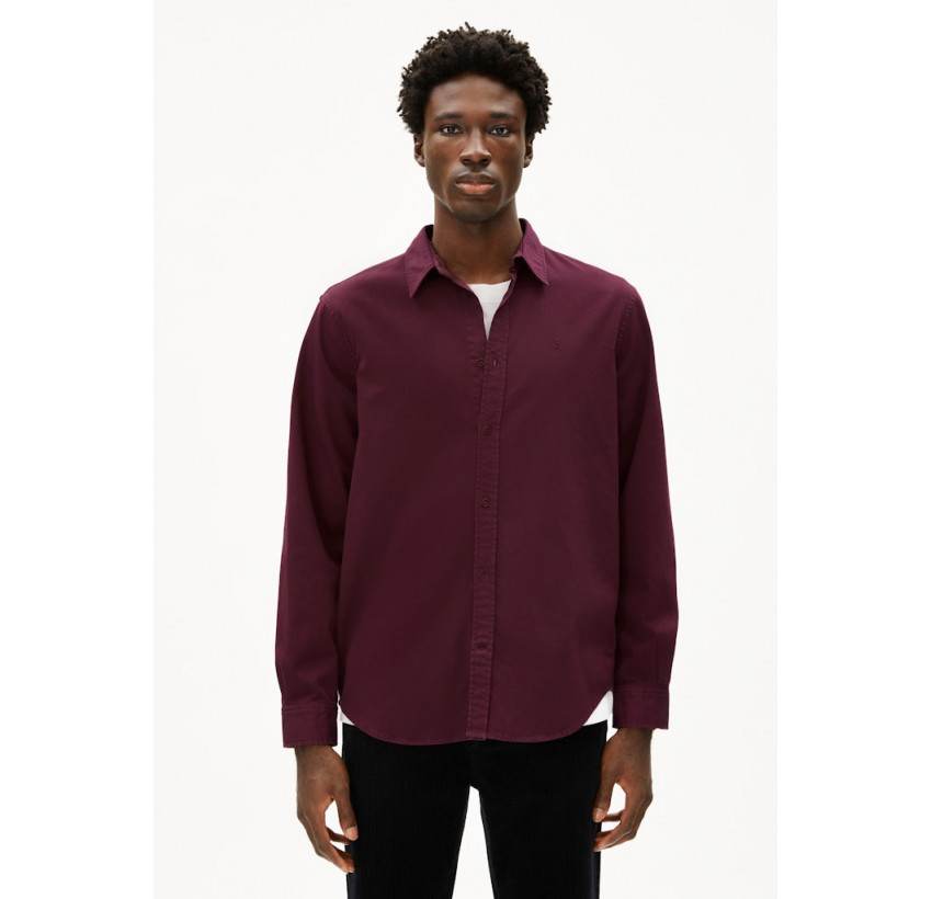 Hemd aus griffigem Webstoff. Das Hemd ist Garment-Dyed, jedes Stück hat somit eine individuelle Färbung. Material: 97% Bio-Baumwolle, 3% Elasthan. Fair hergestellt in Marokko.