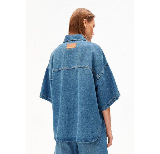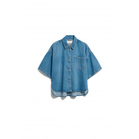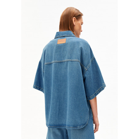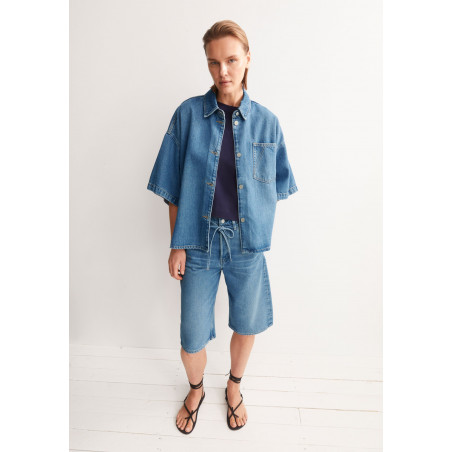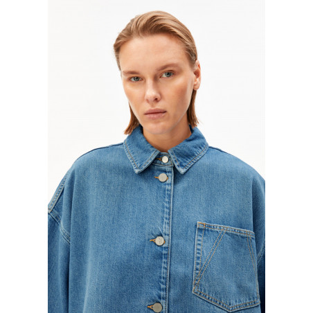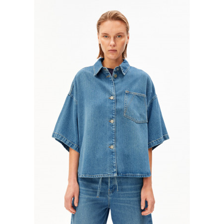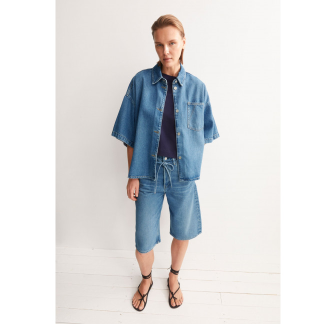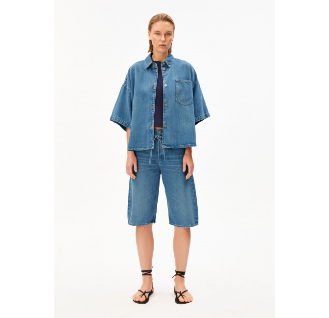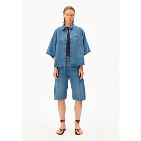 Das kurzärmlige Jeans Overshirt ist weit geschnitten und leicht verkürzt. Mit Hemdkragen, durchgehender Knopfleiste und aufgesetzter Brusttasche. Der Lyocell-Mix mit Tencel® Lyocell und Hanffaser sorgt für ein angenehm festes, strukturiertes Tragegefühl. Material: 43% Tencel® Lyocell, 25% Baumwolle (bio), 21% Baumwolle (recycelt), 11% Hanf.