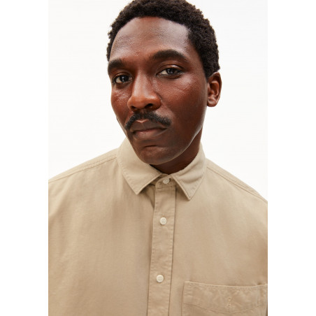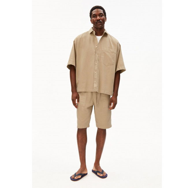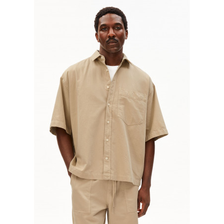 Lässiges Hemd mit durchgehender Knopfleiste und kurzen Ärmeln. Oversized Fit. Weiches, luftiges Material aus 85% Bio-Baumwolle und 17% Leinen. Fair hergestellt in Marokko.