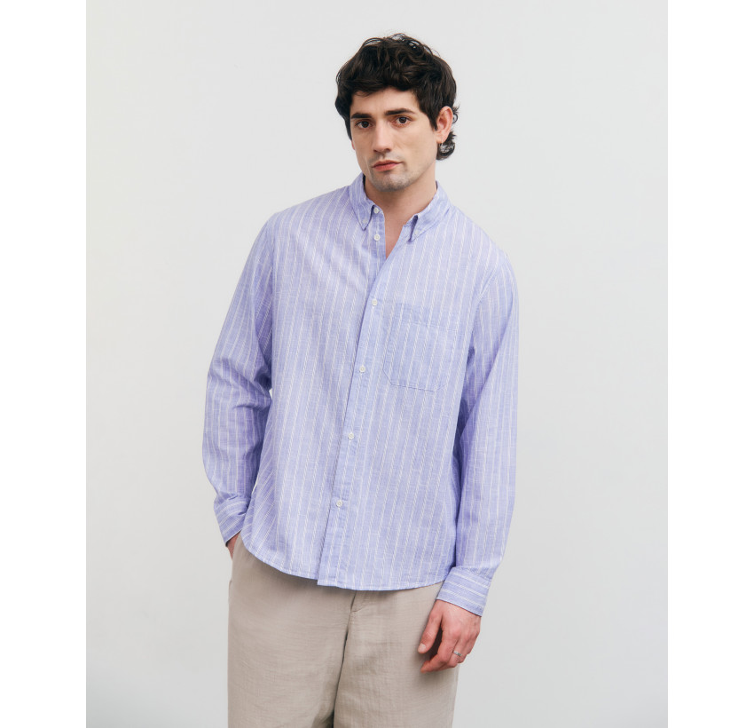 Button-Down Hemd aus gestreiftem Baumwollgewebe. Das Material ist angenehm leicht und hat eine besondere Webstruktur. Das Hemd lässt sich lässig zur Jeans oder lockeren Leinenhose kombinieren und geht auch super als moderne Alternative im Büro. Material: 100% Bio-Baumwolle. Fair hergestellt in Portugal.