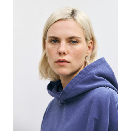 Unisex Boxy-Fit Hoodie aus lockerem French-Terry. Mit Logo-Stickerei. Material: 100% Bio-Baumwolle. Fair hergestellt in Portugal.