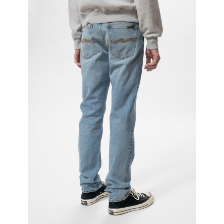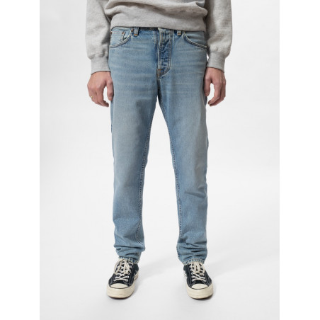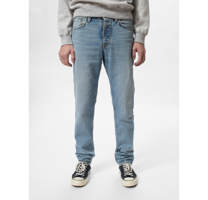 Jeans mit normaler Passform und schmal zulaufendem Bein in hellblauer Waschung mit marmorierter Textur und harmonischer Mischung aus Indigofarben. Hergestellt aus Bio-Baumwolle. Material: 100% Bio-Baumwolle. Fair hergestellt in Tunesien.