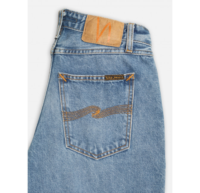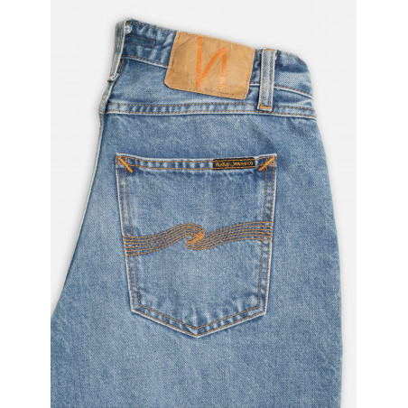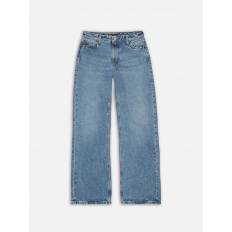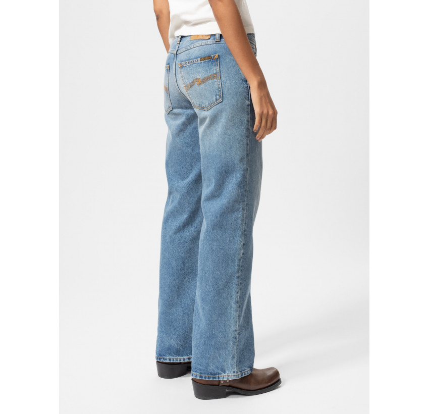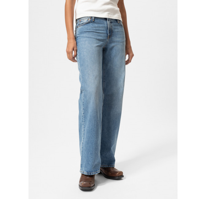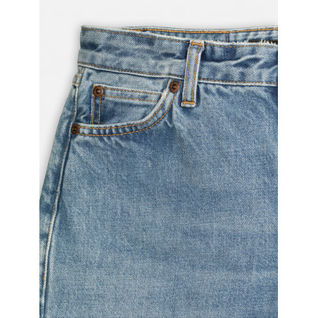 Locker geschnittene Jeans mit weitem Bein und niedriger Taille in einer hellblauen Waschung mit authentischem Used-Look. Dezente Streifen und marmorierte Texturen verleihen ihr den Vintage-Denim-Look. Die Hose sitzt locker auf der Hüfte, daher empfehlen wir die Hose etwa eine Nummer größer als sonst zu wählen. Hergestellt aus 100% Bio-Baumwolle in Italien.