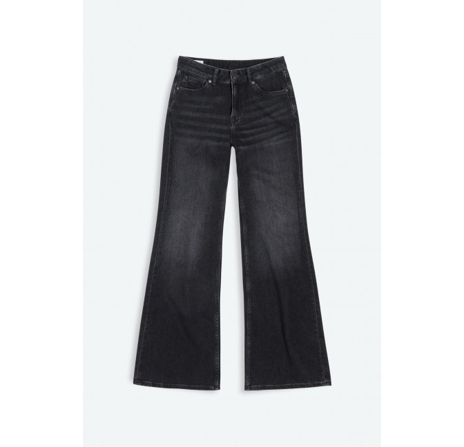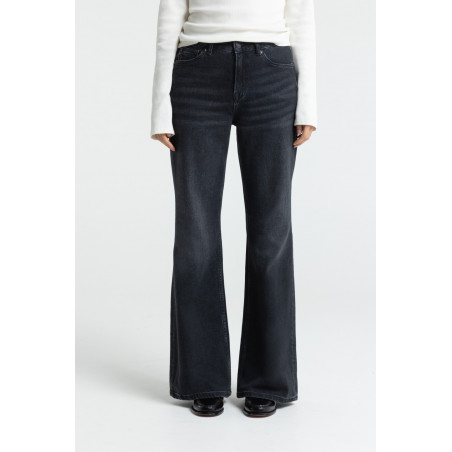 Enganliegende Jeans mit mittelhohem Bund und weit ausgestelltem Bein. Durch moderne Garn-Technologie fühlt sich die Hose bequem und leicht an, als wäre Elasthan enthalten - allerdings ist sie aus 100% Baumwolle hergestellt, was sie nachhaltiger, besser recycelbar und umweltfreundlicher macht. Material: 100% Bio-Baumwolle. Fair hergestellt in der Türkei.