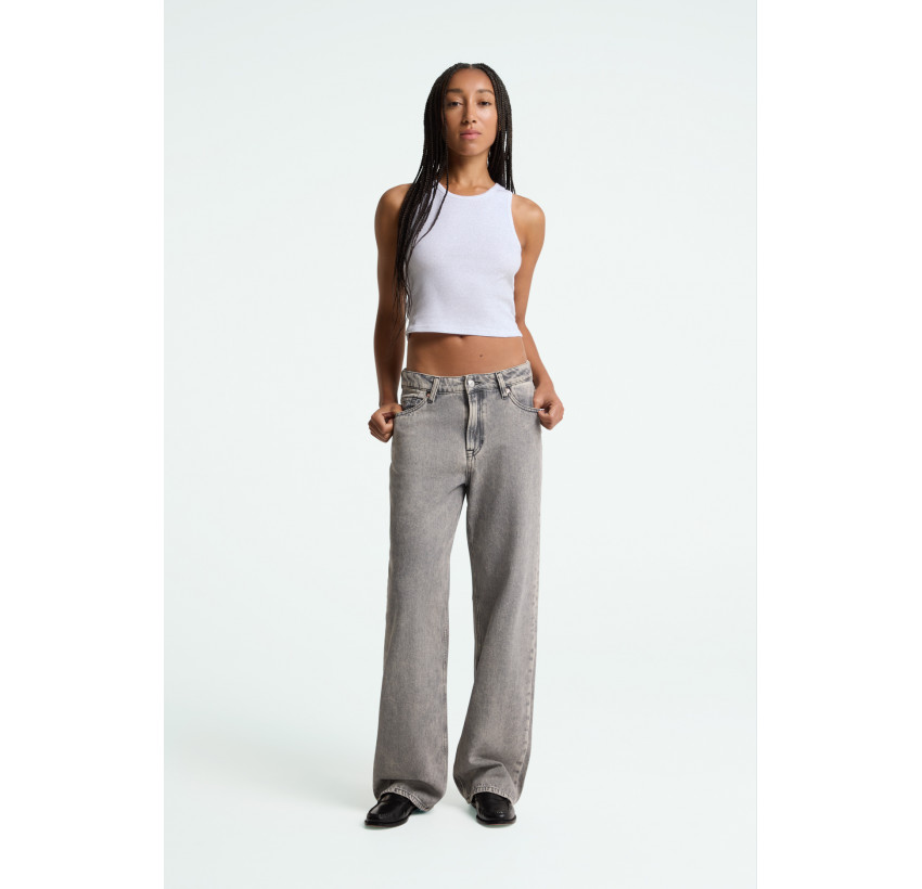 Joan ist eine locker sitzende Five-Pocket-Jeans mit niedriger Leibhöhe und weitem Bein. Sie hat einen geschwungenen Bund für eine bessere Passform. Geh auf deine normale Größe für einen lässigen Fit. Gehe ein bis zwei Größen kleiner für eine körpernahe Straight-Fit-Jeans. Sie kommt hier in einer marmorierten, hellgrauen Waschung auf einem leichten Denim. Material: 100% Bio-Baumwolle. Fair hergestellt in der Türkei.
