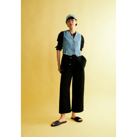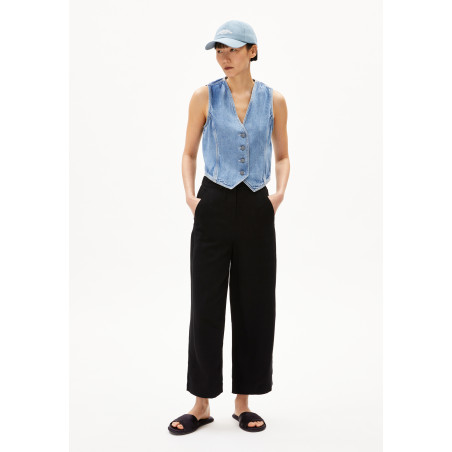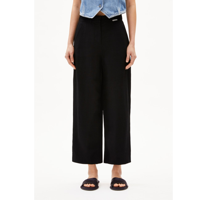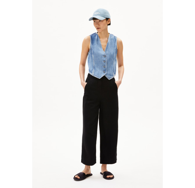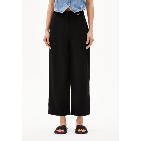 Luftige Hose aus Leinen-Mix. Verkürztes, lockeres Bein und Gummibund hinten. Relaxed Fit. Material: 74% EcoVero® Viskose, 26% Leinen. Fair hergestellt in Marokko.