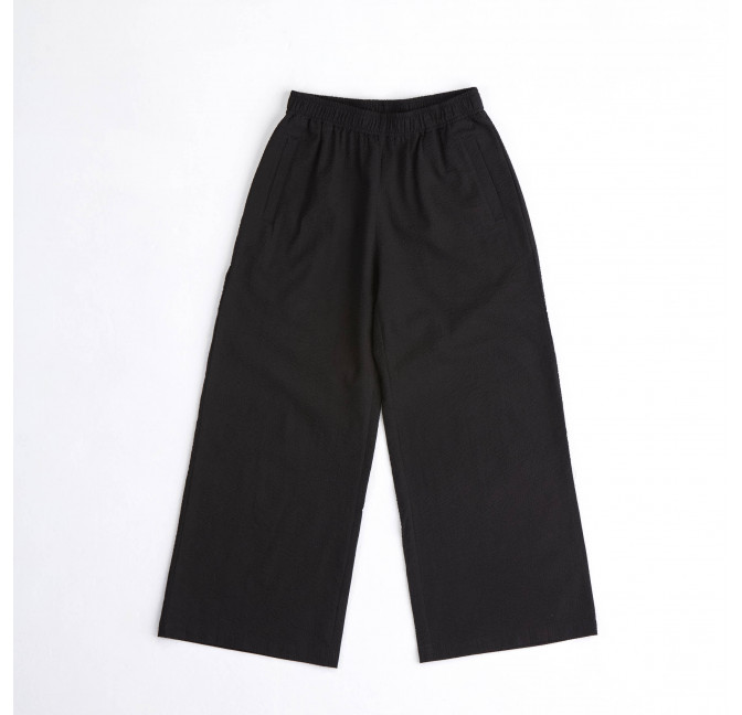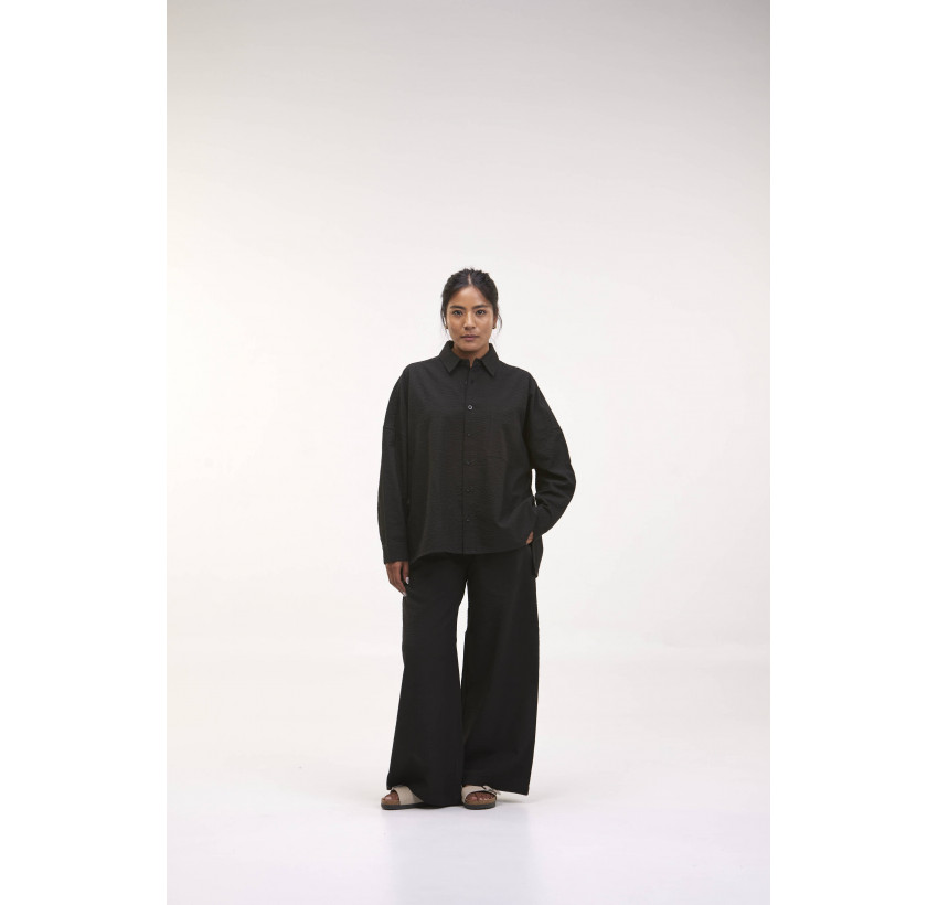 Sommerhose mit weitem Bein, seitlichen Taschen und Gummibund. Aus hochwertigem Bio-Baumwoll-Seersucker mit der charakteristischen Struktur, die sich im Sommer schön luftig anfühlt. Aus 100% Bio-Baumwolle. Fair hergestellt in Nepal.