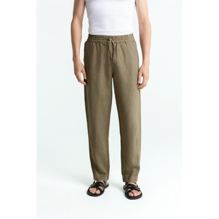 Luftige Hose aus Leinen vom Amsterdamer Brand Kings Of Indigo. Die Hose hat eine reguläre Passform und einen entspannten Schnitt. Durch den Tunnelzug am Bündchen sitzt sie bequem auf der Taille. Material: 100% Leinen. Made in Ukraine.