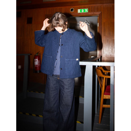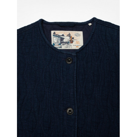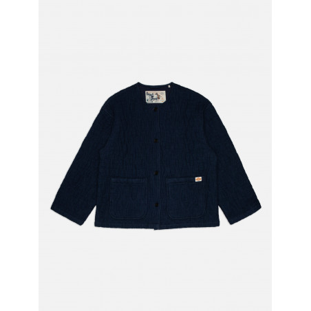 Diese Jacke ist aus einem weichen Baumwollstoff in Leinwandbindung gefertigt – aus Bio- und Fairtrade-Baumwolle. Der tiefblaue Farbton stammt von Indigo, der lebendigen Farbe, die mit der Zeit auf natürliche Weise verblasst und sich verändert – wie bei deinen liebsten Dry Denim Jeans – und durch Tragen und Waschen an Schönheit gewinnt. Die Innenseite zeigt ein farblich passendes Gewebe, das nicht ausblutet oder abfärbt. Die Jacke ist leicht wattiert und mit einer unregelmäßigen, welligen Steppung versehen. Der Schnitt ist angenehm locker und kastig. Material: 100% Bio-Baumwolle. Fair hergestellt in Indien.