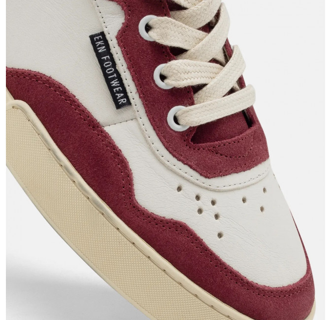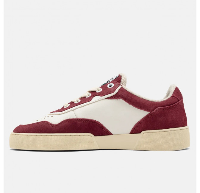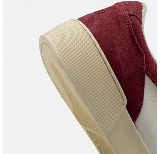 Unisex Tennis-Sneaker in schöner Kombi aus Wildleder in bordeaux und Glattleder in weiß.