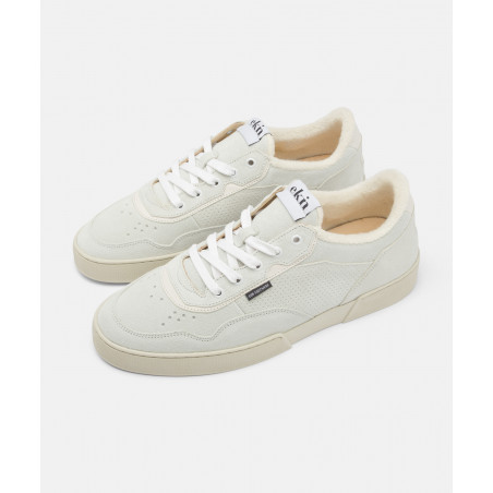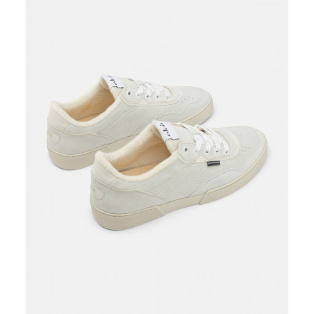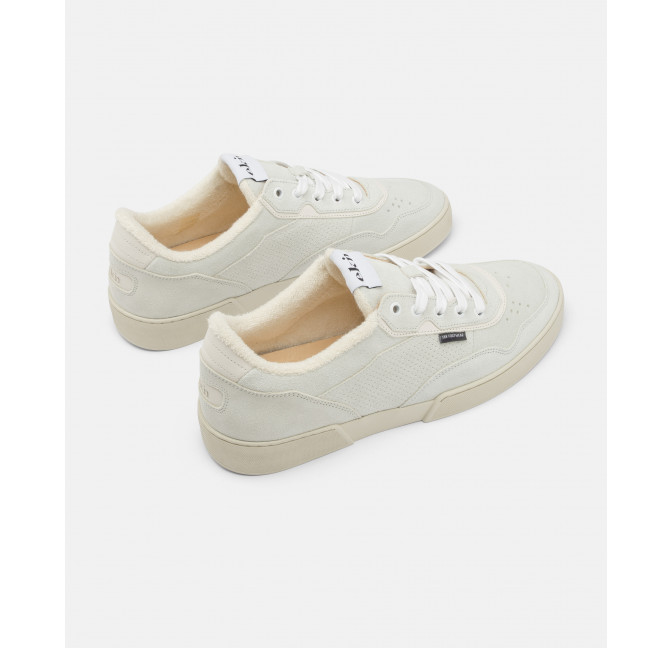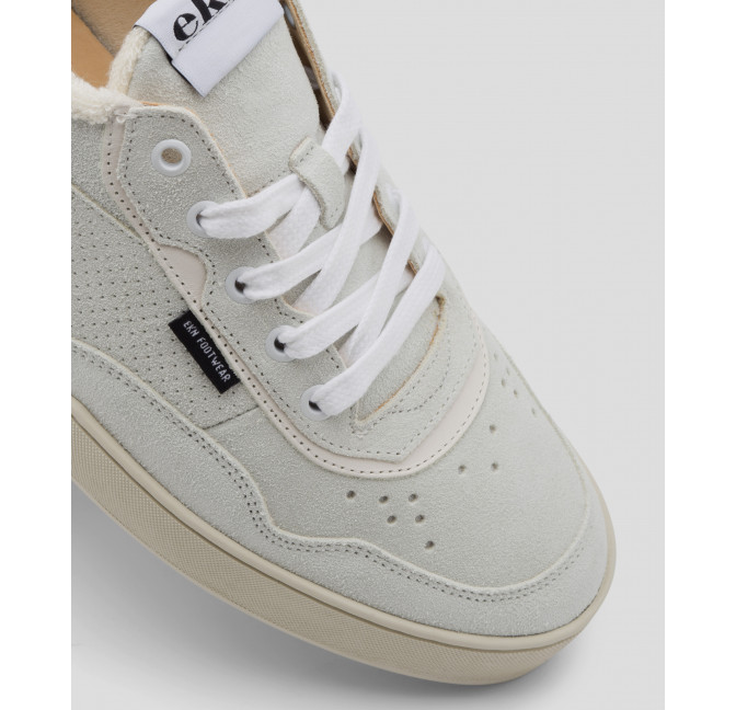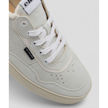 Unisex Tennis-Sneaker in weiß-grauem Wildleder.