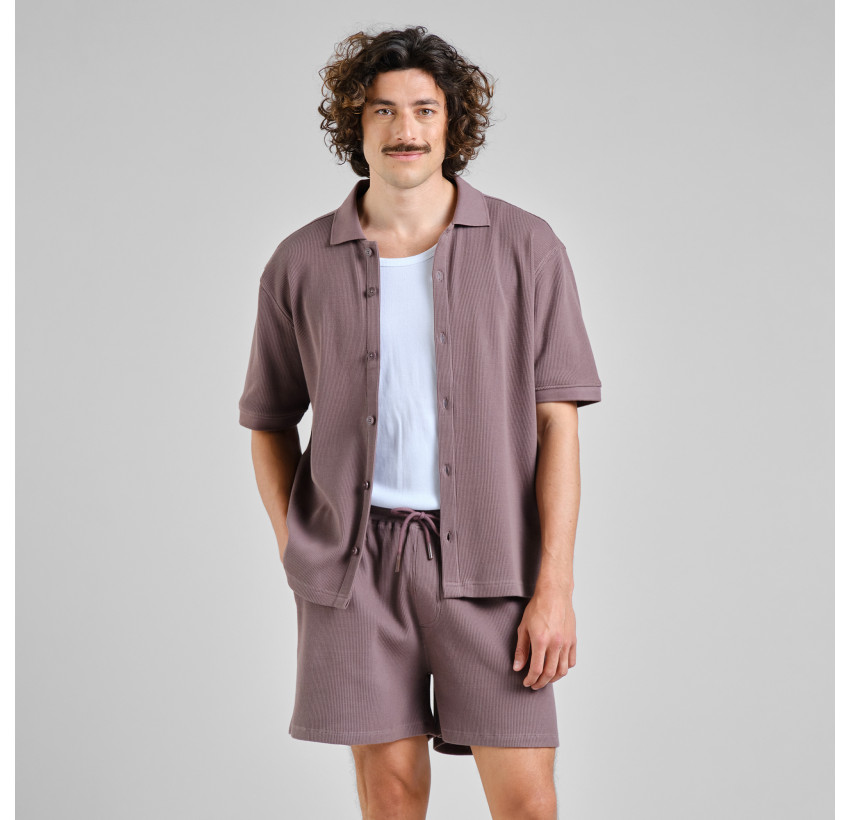 Lässige Shorts mit Waffelstruktur. Mit Gummibund und Taschen. Material: 95% Bio-Baumwolle, 5% Elasthan. Fair hergestellt in Indien.