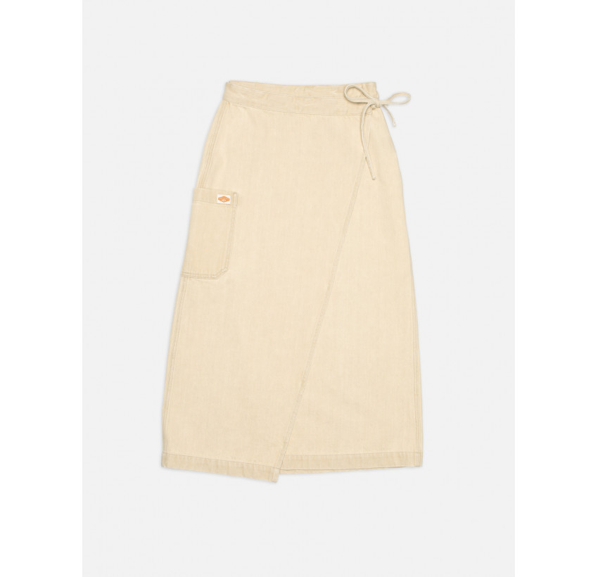 Regular-Fit-Jeansrock mit hoher Taille in einer hellen, sonnengebleichten Braunwaschung. Irma verfügt über ein Wickeldesign mit einem verstellbaren Bundriemen und einer geräumigen, rechteckigen Seitentasche, die sowohl Funktionalität als auch Charakter verleiht. Material: 100% Bio-Baumwolle. Fair hergestellt in Tunesien.