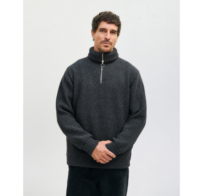 Unisex Troyer aus grober, schwerer Wolle. Material: 70% Recycelte Wolle, 30% Recyceltes Nylon. Fair hergestellt in Portugal.