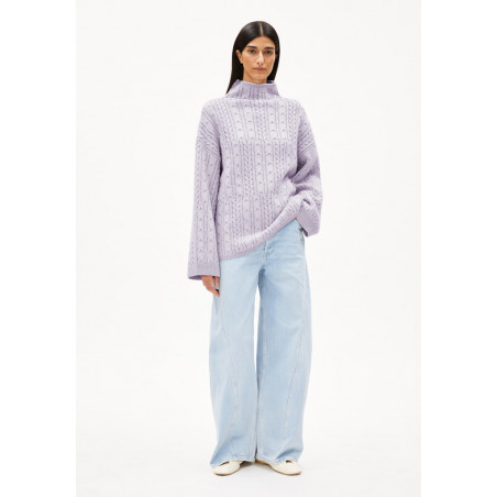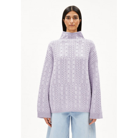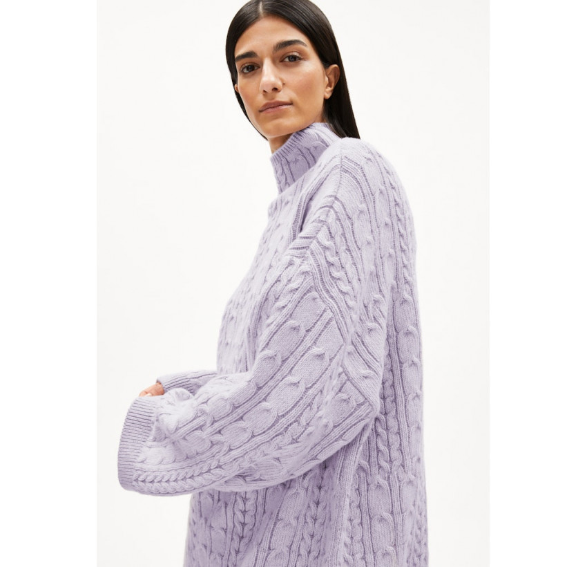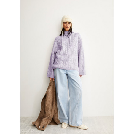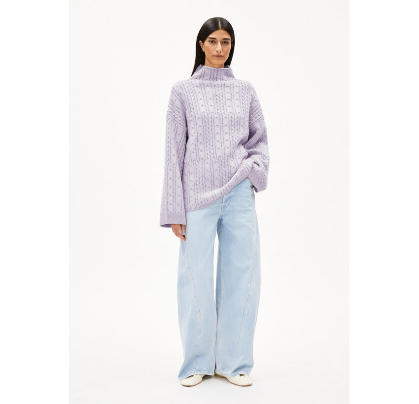 Oversized Pullover mit Stehkragen. Mit zweifarbigem Zopfmuster. Relaxed Fit. Material: 50% Wolle (recycled), 50% Wolle (bio). Fair hergestellt in der Türkei.