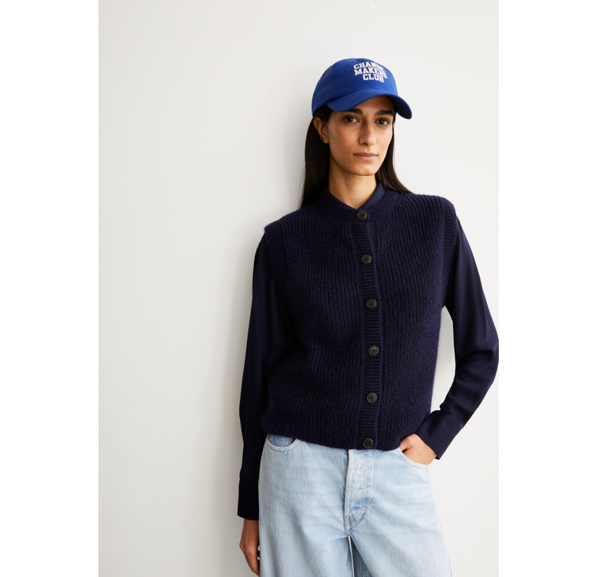 Strickweste mit Knopfleiste. Aus super weichem Mohair-Mix. Relaxed Fit. Material: 50% Mohair, 50% Wolle (bio). Fair hergestellt in der Türkei.