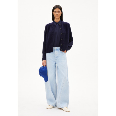 Hochwertige Strickweste mit Knopfleiste. Aus super weichem Mohair-Mix. Relaxed Fit. Material: 50% Mohair, 50% Wolle (bio). Fair hergestellt in der Türkei.