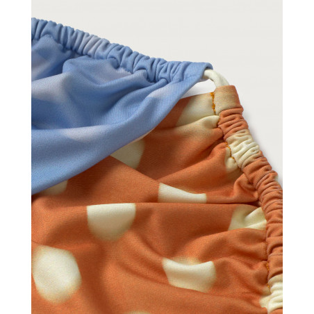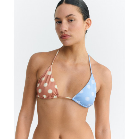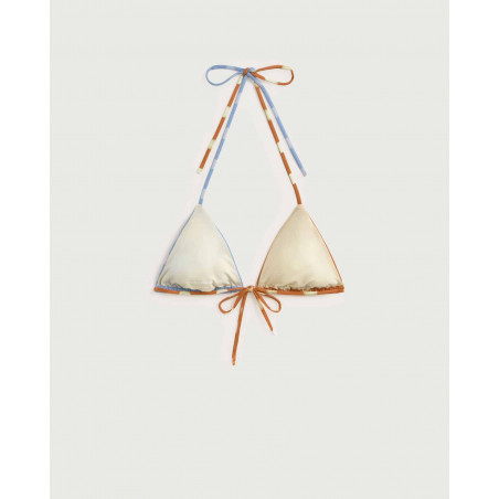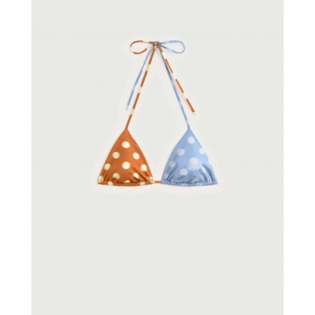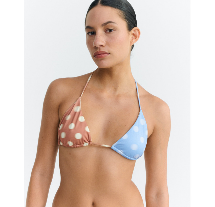 Zweifarbiges Bikini Top. Eher knapp geschnitten, fällt kleiner aus. Material: 48% Polyester (recycled), 48% Polyamid (recycled), 6% Elasthan. Fair hergestellt in Spanien.