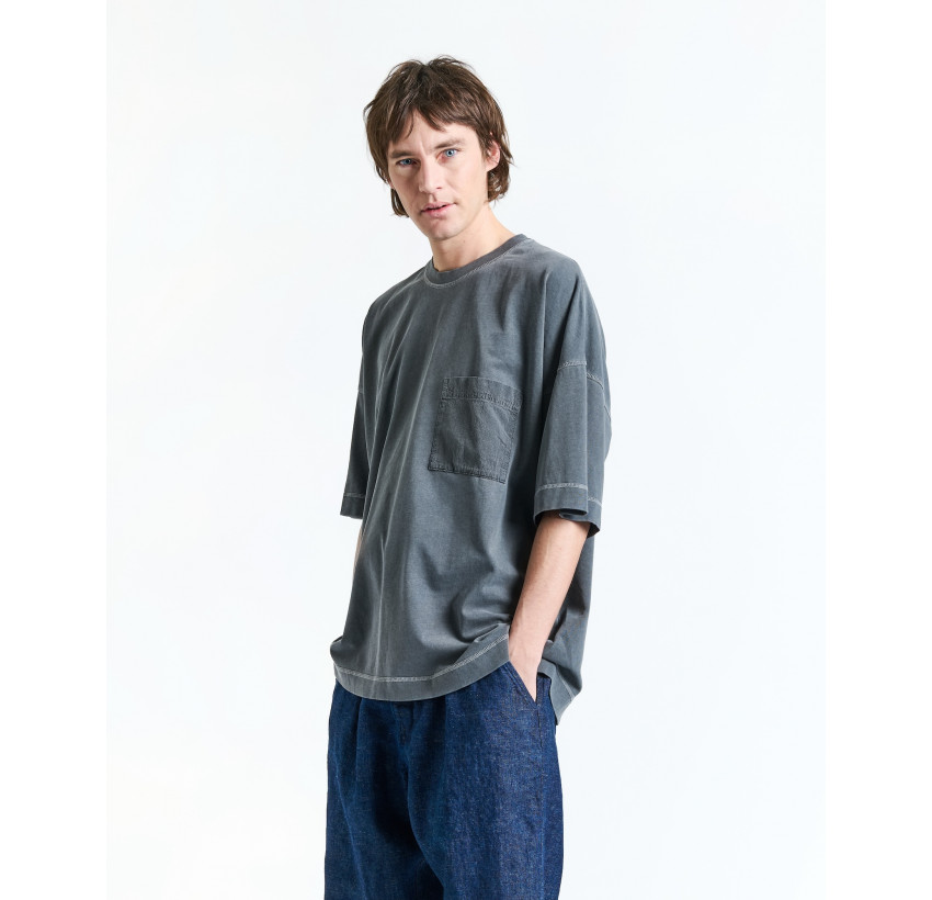 Oversized T-Shirt mit Kontrastnähten und aufgesetzter Tasche. Die Shirts sind stückgefärbt was ihnen einen individuellen Look verleiht. Material: 100% Bio-Baumwolle. Fair hergestellt in Amsterdam.