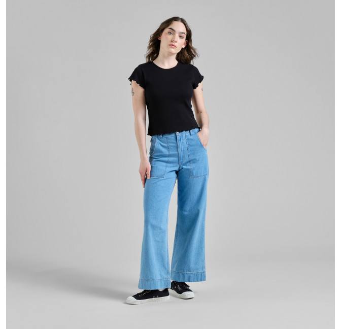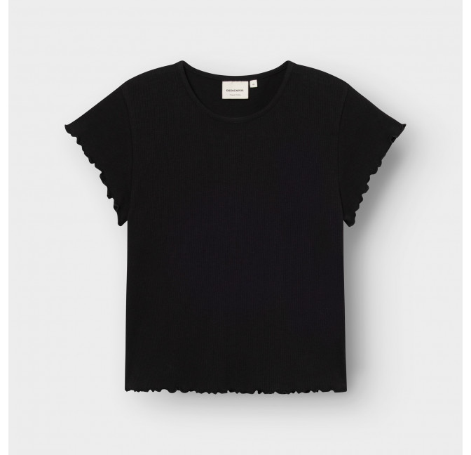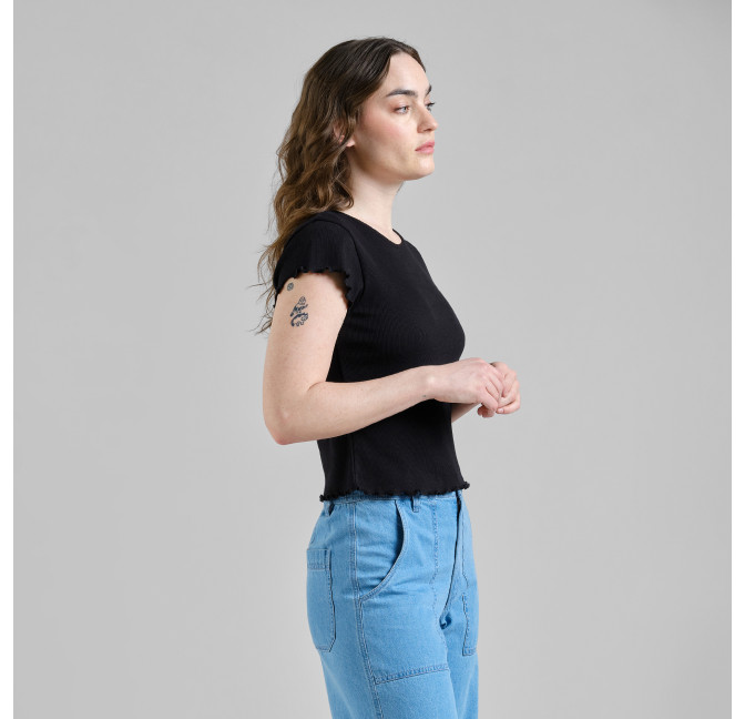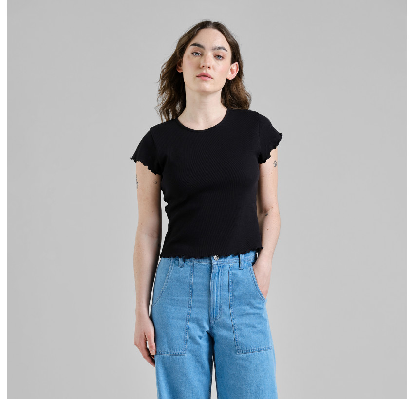 Rib Shirt mit Muschelsaum. Das T-Shirt ist enganliegend und etwas kürzer geschnitten. Material: 95% Bio-Baumwolle, 5% Elasthan.