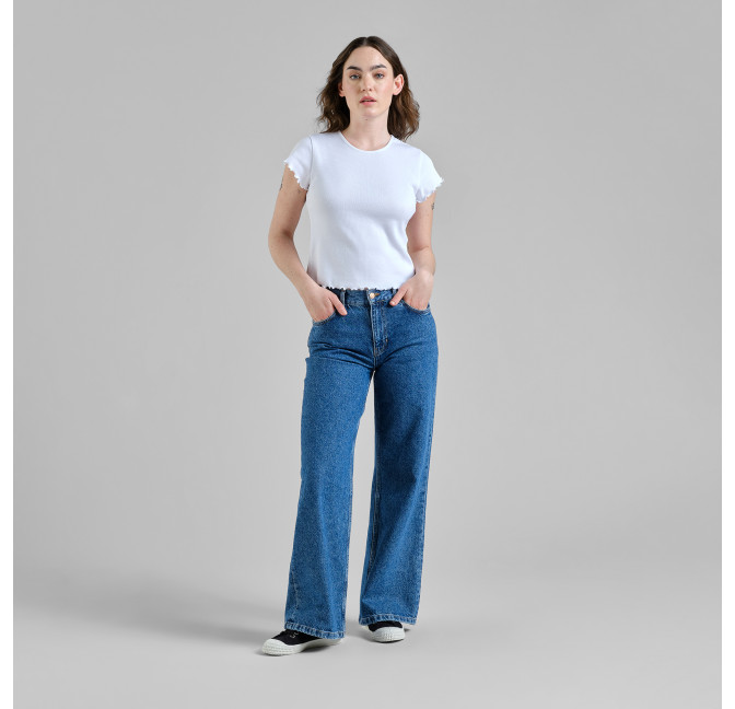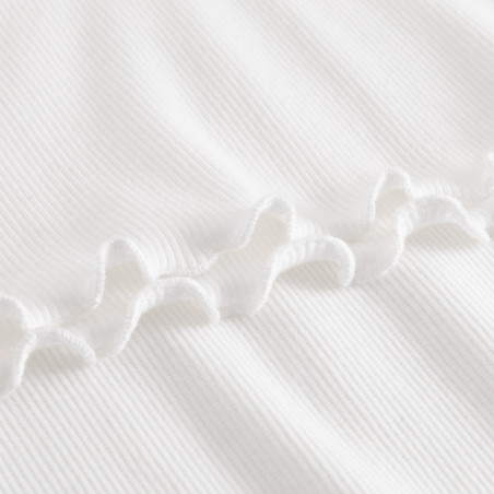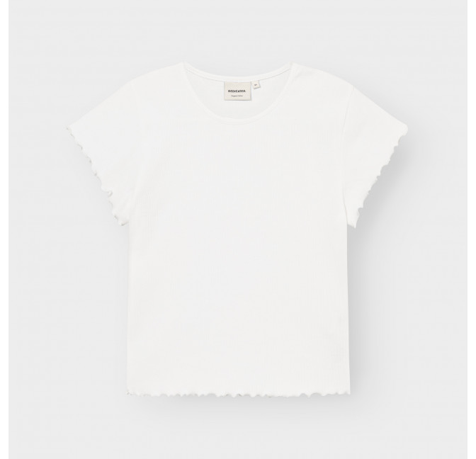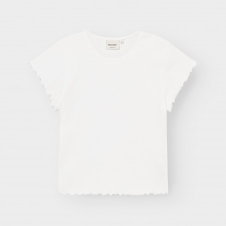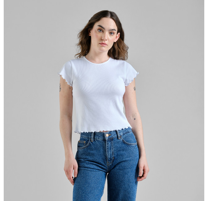 Rib Shirt mit Muschelsaum. Das T-Shirt ist enganliegend und etwas kürzer geschnitten. Material: 95% Bio-Baumwolle, 5% Elasthan.